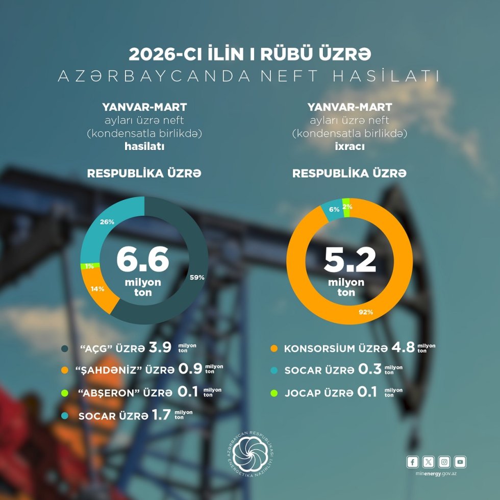 “Azəri-Çıraq-Günəşli” və “Şahdəniz” yataqları istismara veriləndən 1 aprel 2026-cı il tarixinədək 675 milyon tona yaxın neft (qaz kondensatı ilə birlikdə), 519 milyard kubmetr qaz hasil edilib. “Azəri-Çıraq-Günəşli”dən 621,7 milyon ton neft, 247,4 milyard kubmetr qaz, “Şahdəniz”dən isə 53,3 milyon tona yaxın kondensat, 271,6 milyard kubmetr qaz hasil edilib. Bu dövrdə 673 milyon ton neft, 196,5 milyard kubmetr qaz ixraca nəql edilib.