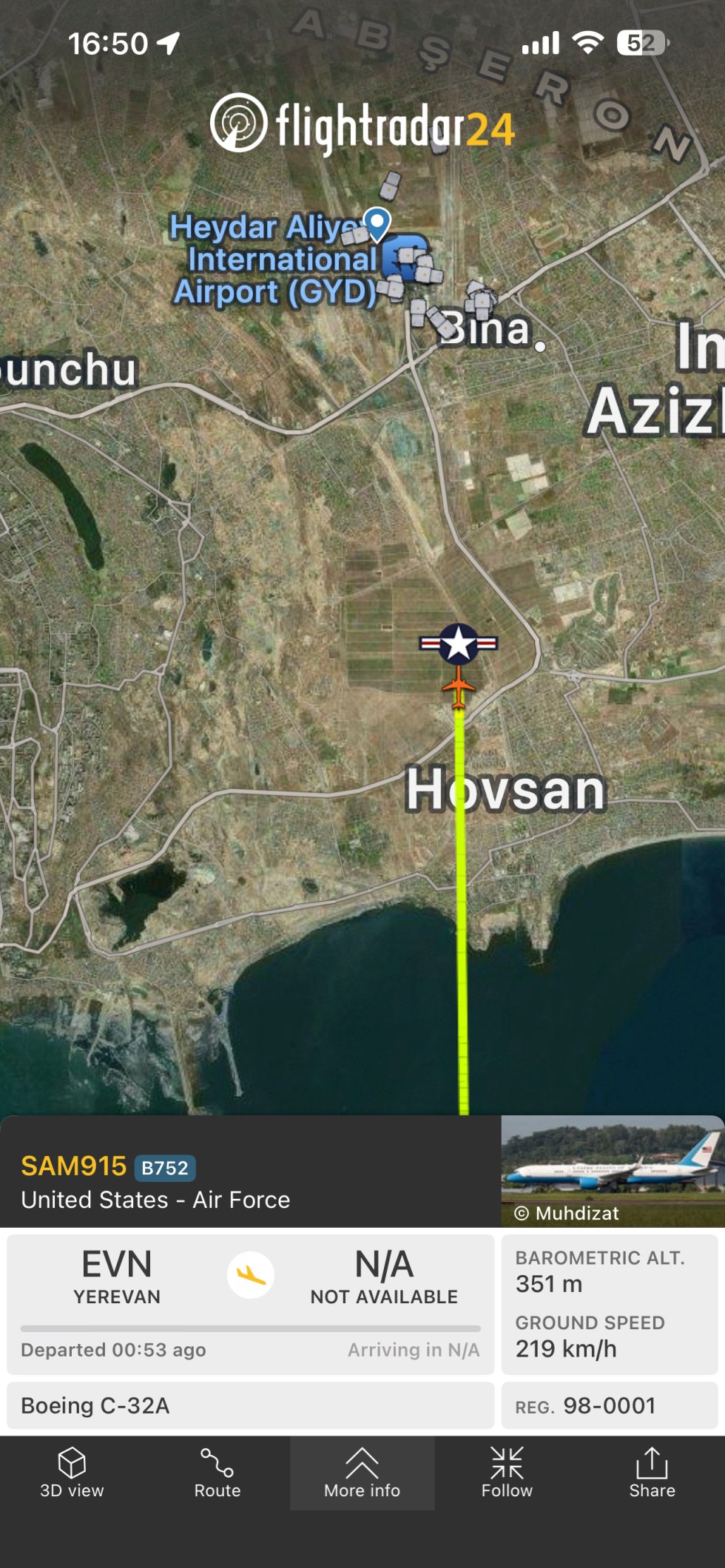 Bu barədə Flightradar24 tədbiqi və FOX News TV məlumat verir FOTO/YENİLƏNİB