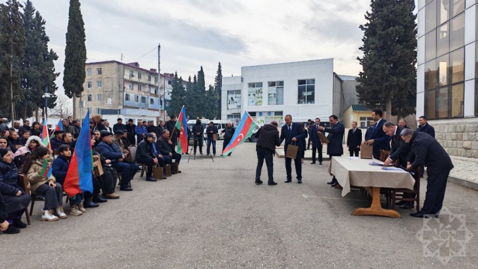 Xankəndi şəhərində, Xocalı və Ağdərə rayonlarında Prezidentin xüsusi nümayəndəsinin müavini Səbuhi Qəhrəmanov və Bərpa, Tikinti və İdarəetmə Xidmətinin icraçı direktoru Telman Kərimli keçmiş məcburi köçkünləri təbrik edərək, onlara xoşbəxt və firavan həyat arzulayıblar.