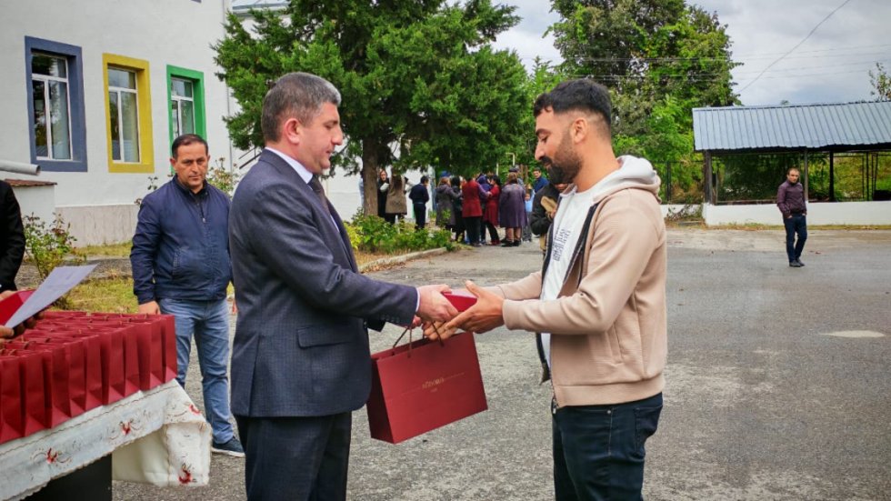 Növbəti köç karvanı Ağdərə rayonunun Həsənriz kəndinə çatıb, açarlar sakinlərə tədqim olunub.