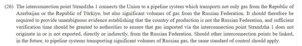 Yeni AB qaydası (EU/261/2026) Azərbaycan və Türkiyədən Birliyə tədarük edilən qazın Rusiya mənşəli olmadığına dair sübut təqdim etmələrini tələb edir. Təsdiq sərhəddə, məsələn, Bolqarıstandakı Strandzha 1 kompressor stansiyasında idxaldan əvvəl alınmalıdır. Bu, Rusiya qazına qoyulan embarqonun qarşısını tamamilə almaq üçün nəzərdə tutulub.