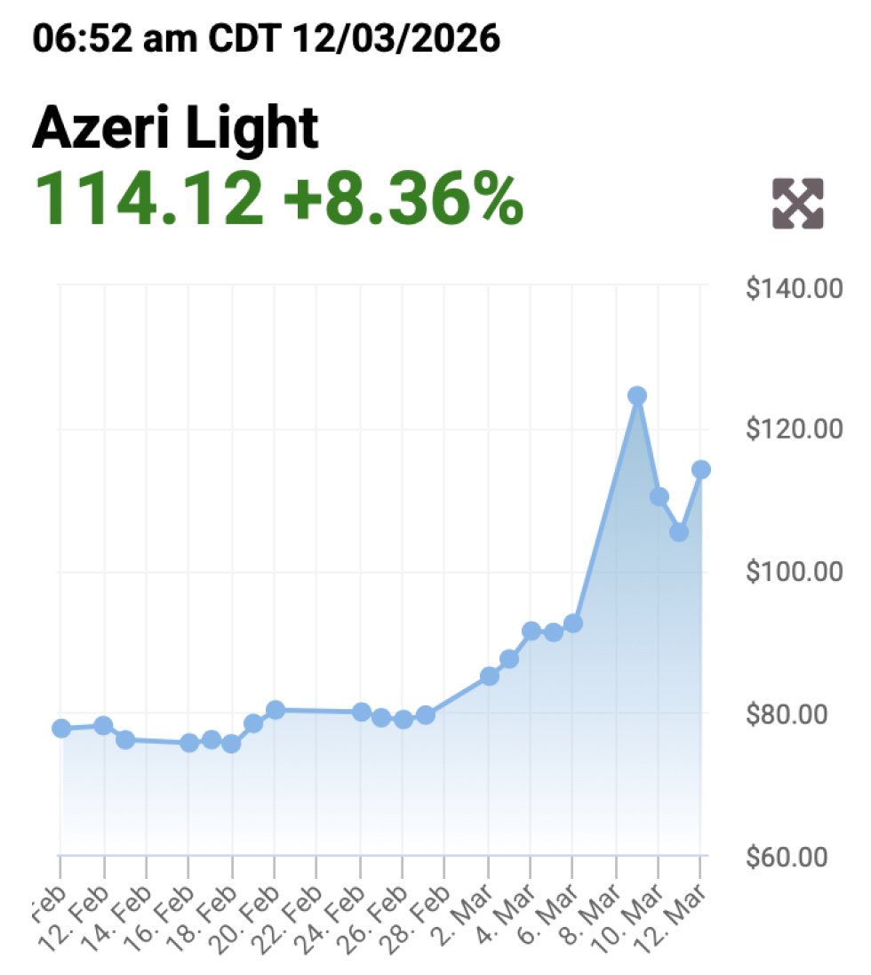 Azeri Light neft markasının 1 bareli 8,36%, ya da 8,80 ABŞ dolları bahalaşaraq 114,12 ABŞ dollarına satılıb - oilprice.com