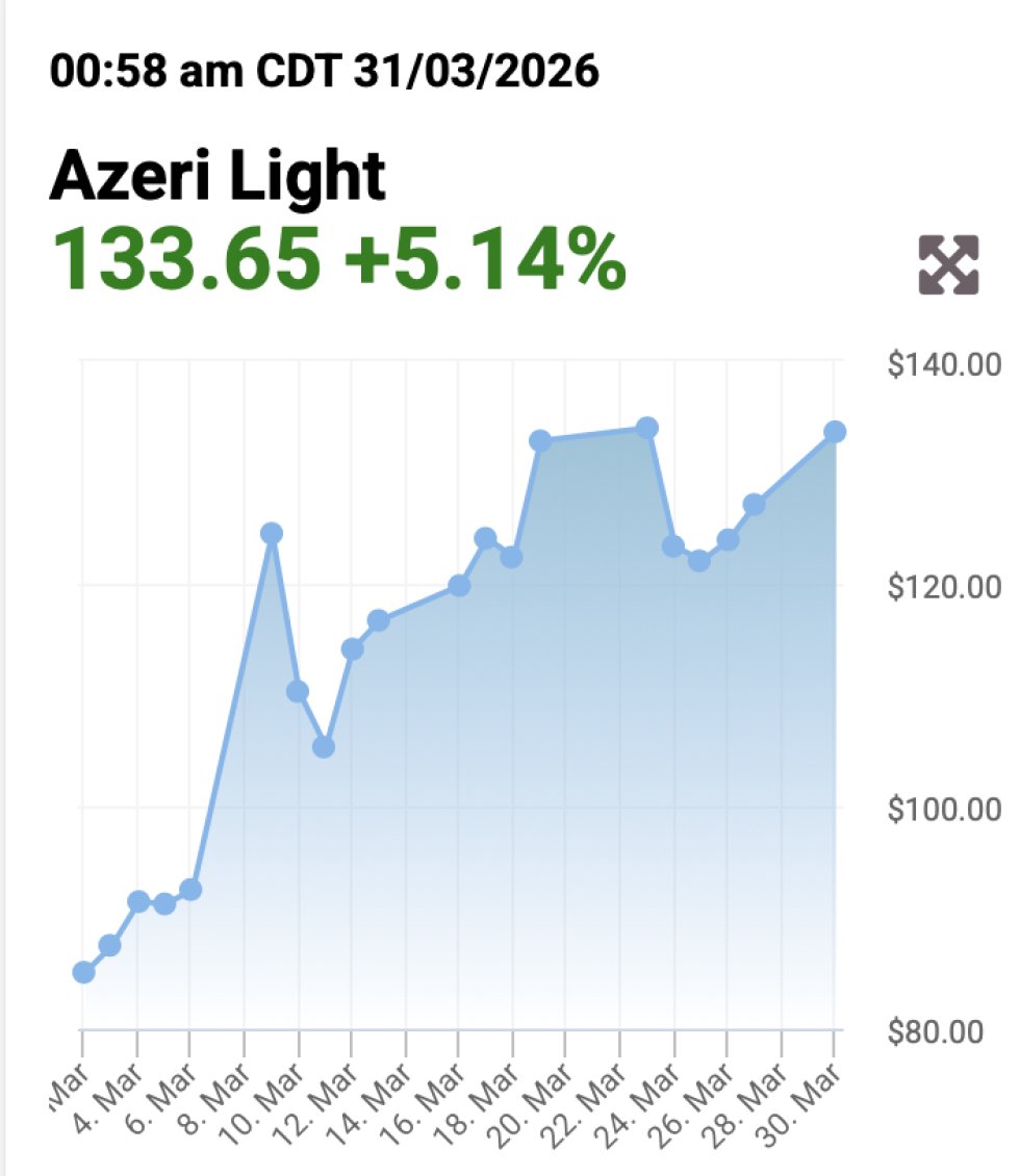 "Oilprice" agentliyi fərqli məlumat verir. Agentliyə istinadən, Azərbaycan neftinin 1 bareli 5,14% və ya 6,53 ABŞ dolları bahalaşaraq 133,65 ABŞ dollarına satılıb