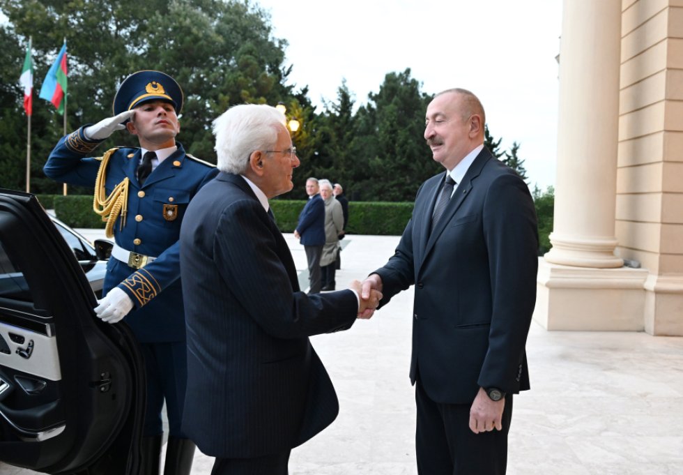 Azərbaycan Prezidenti İlham Əliyev İtaliya Prezidenti Sercio Mattarellanı qarşılayıb.