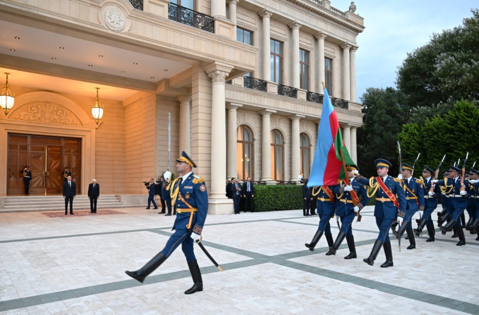 Fəxri qarovul dəstəsi hərbi marşın sədaları altında Azərbaycan Prezidenti İlham Əliyevin və İtaliya Prezidenti Sercio Mattarellanın qarşısından keçib.