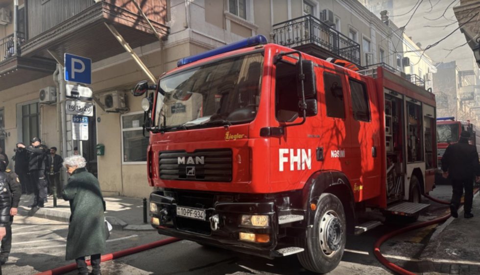 Bakının mərkəzində binada yanğın başlayıb.