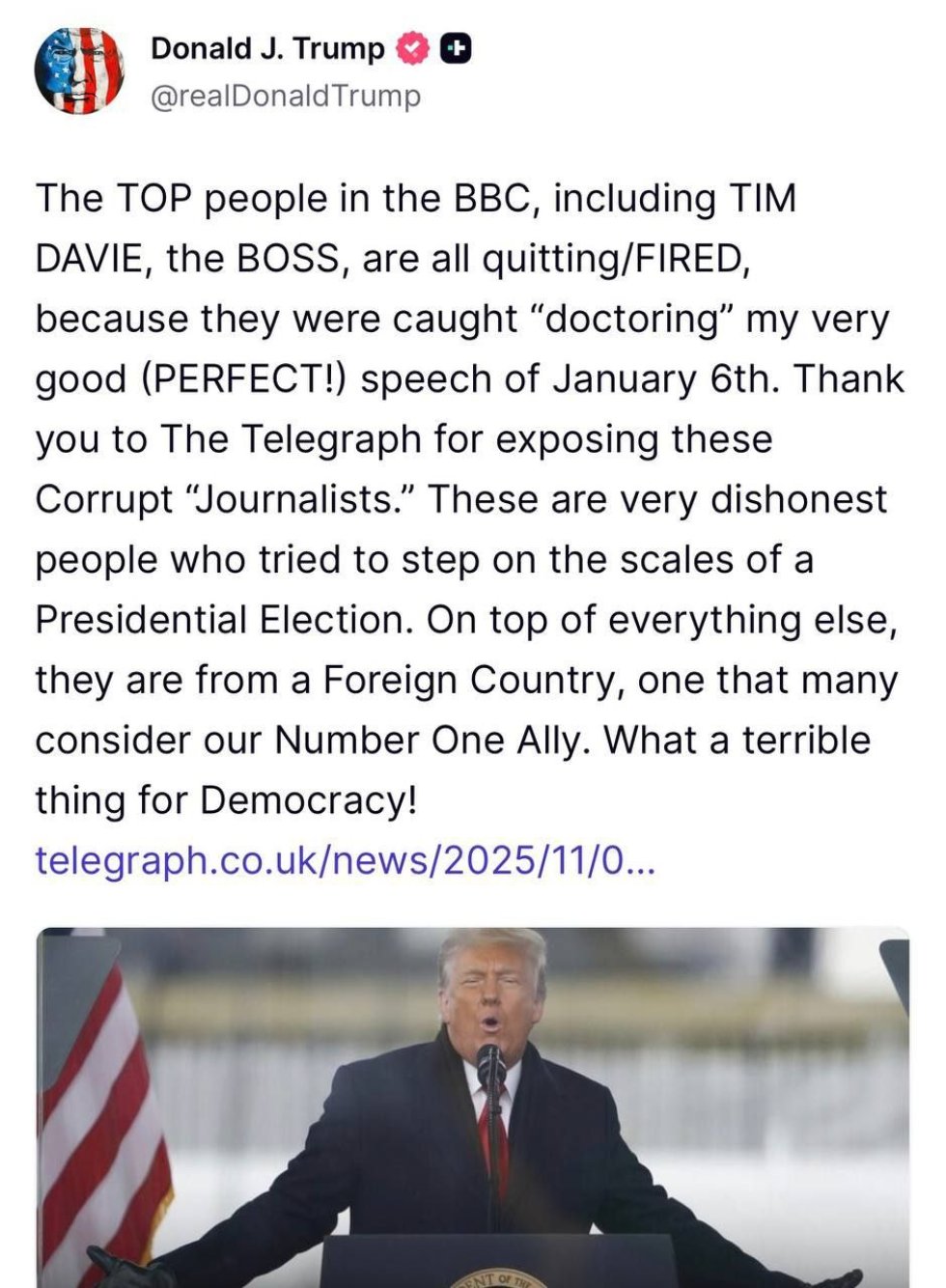 BBC-nin baş direktoru Tim Deyvi və xəbərlər şöbəsinin rəhbəri Deborah Turness "Tramp: İkinci Şans?" sənədli filmi ətrafında yaranan mübahisədən sonra istefalarını elan etdilər.