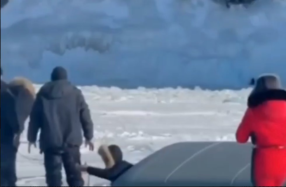 Çinli turistlərin maşını Baykal gölündə buzun altına gedib