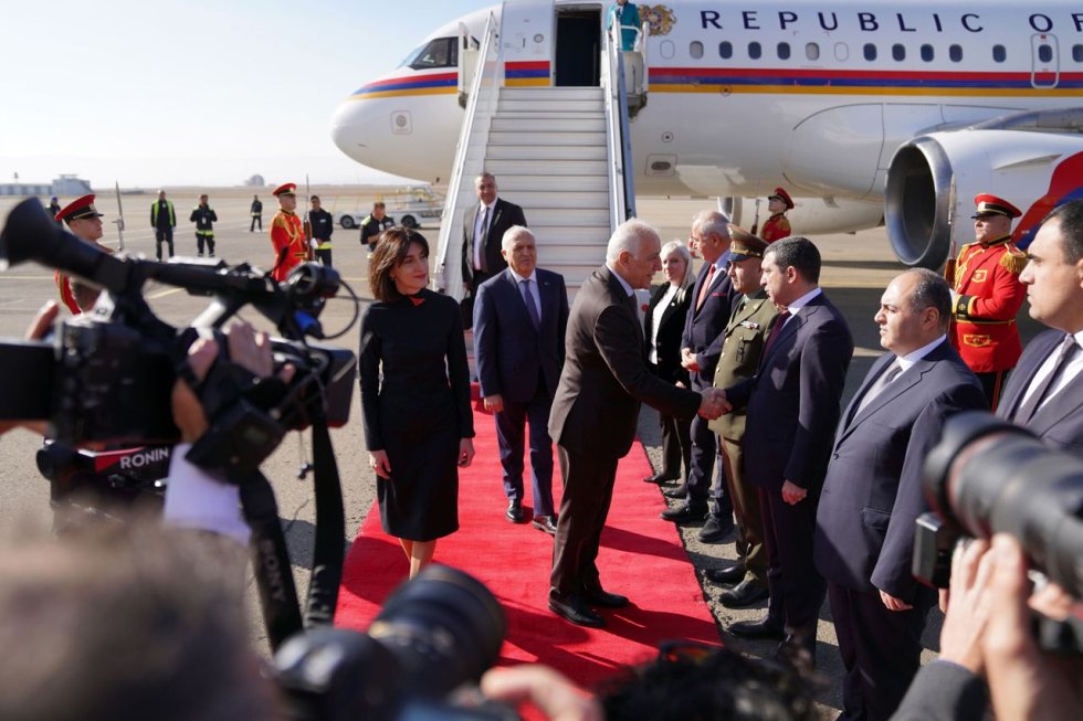 Tbilisi Beynəlxalq Hava Limanında prezidenti Gürcüstanın xarici işlər naziri Maka Boçorişvili, Gürcüstan Prezidentinin Administrasiyasının rəhbəri Ketevan Kvinikadze və Gürcüstanın Ermənistandakı səfiri Giorgi Şarvaşidze qarşılayıblar.