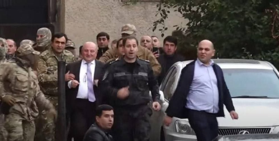Gümrü meri Vardan Qukasyan çox sayda xüsusi təyinatlının müşayiəti ilə bələdiyyə binasından çıxarılıb.
