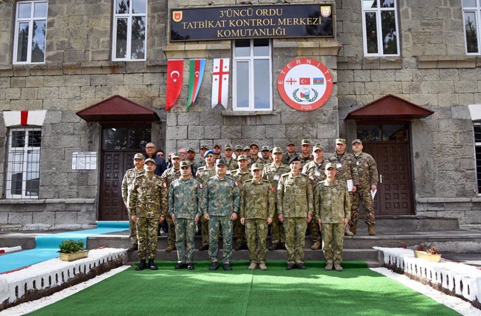 Azərbaycan, Gürcüstan və Türkiyə hərbçilərinin iştirakı ilə Türkiyənin Qars vilayətində təşkil olunan üçtərəfli "Eternity-2025" kompüter dəstəkli komanda qərargah təliminin "Yüksək Səviyyəli Müşahidəçi Günü" keçirilib.