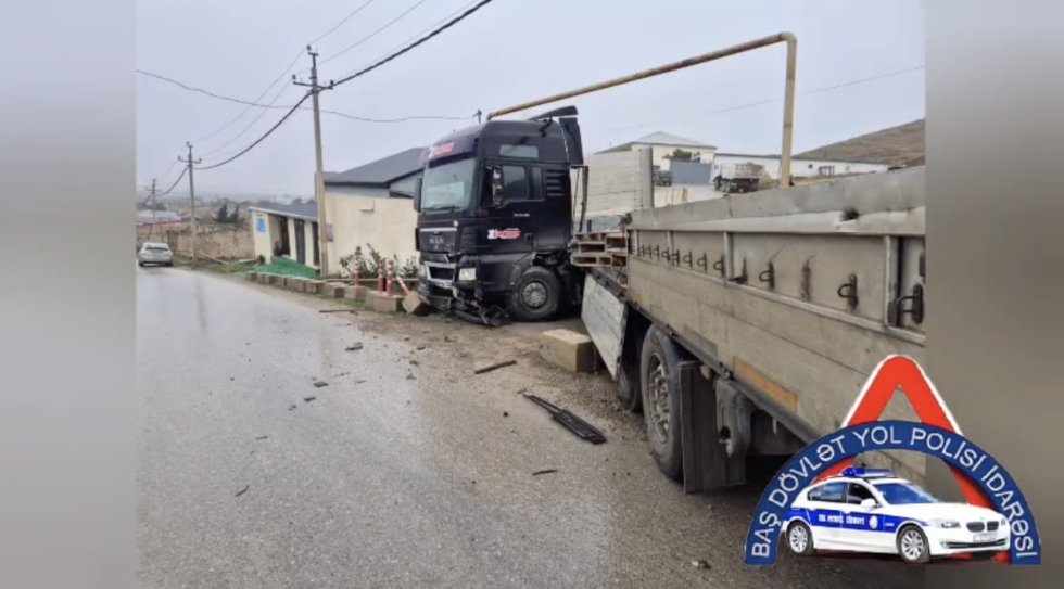 Bu gün saat 08:35 radələrində Abşeron rayonunun Qobu qəsəbəsi ərazisindən keçən avtomobil yolunda ağır yol-nəqliyyat hadisəsi baş verib. “MAN” markalı yük avtomobilini idarə edən Umudvar Abbasov yağışlı hava şəraitini və sürət rejimini nəzərə almadan sərt döngəyə daxil olarkən idarəetməni itirib və qarşıdan gələn “Toyota” markalı minik avtomobili ilə toqquşub.