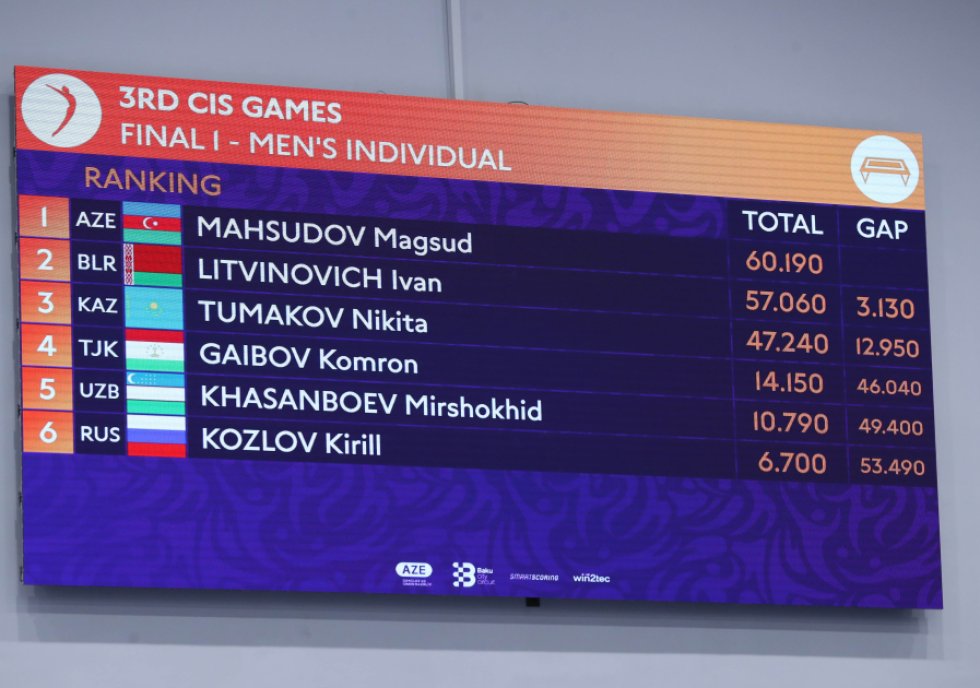 Batut gimnastikası üzrə Azərbaycan millisinin üzvü Maqsud Mahsudov III MDB Oyunlarında qızıl medal qazanıb.