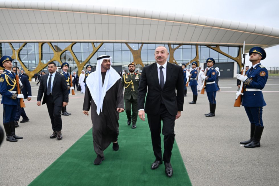 Hər iki ölkənin dövlət bayraqlarının dalğalandığı meydanda Birləşmiş Ərəb Əmirliklərinin Prezidentinin şərəfinə fəxri qarovul dəstəsi düzülmüşdü.