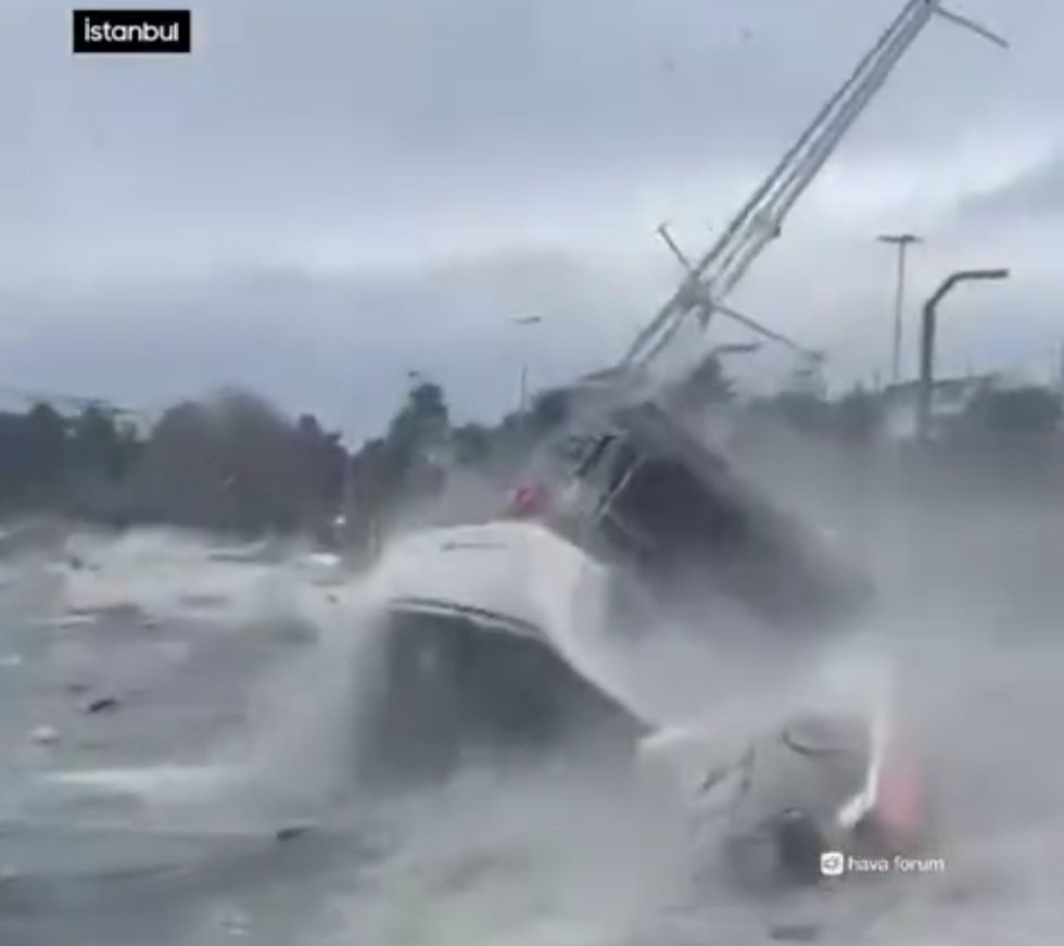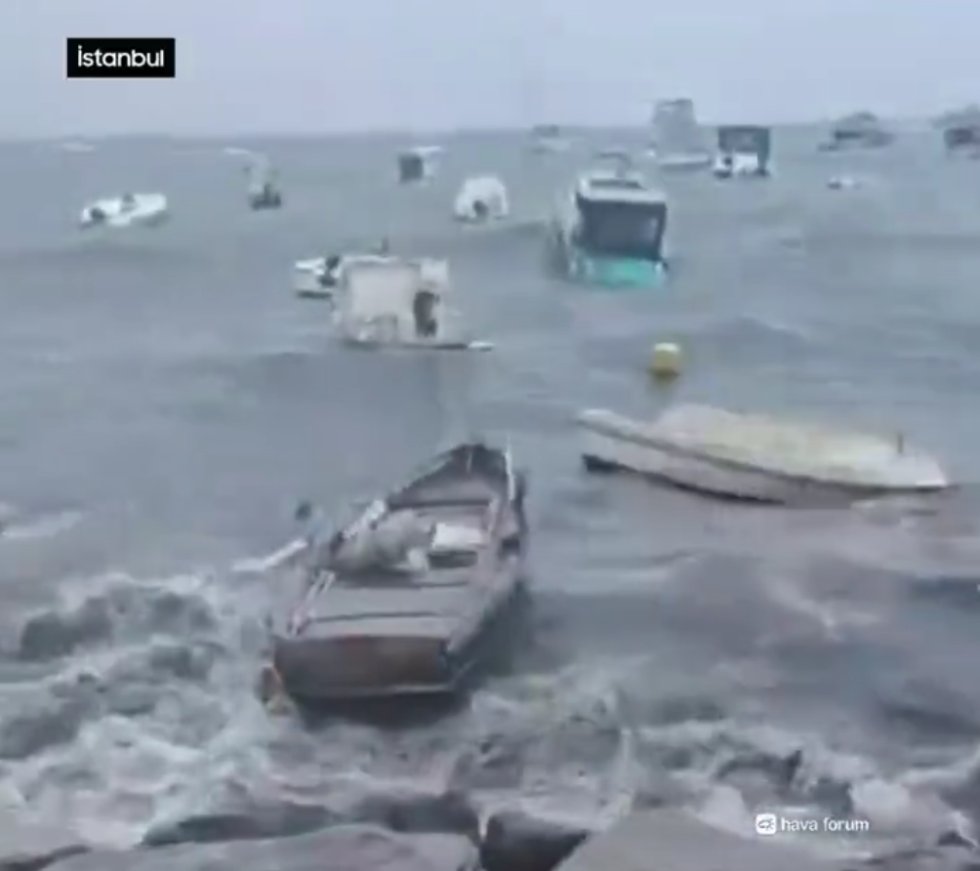 Türkiyənin "Hava Forum" meteorologiya forumu İstanbulda qasırğa qüvvəli külək və fırtınaların baş verdiyini, nəticədə qayıqların batdığını, evlərin damlarının qopduğunu və ağacların aşdığını bildirir.