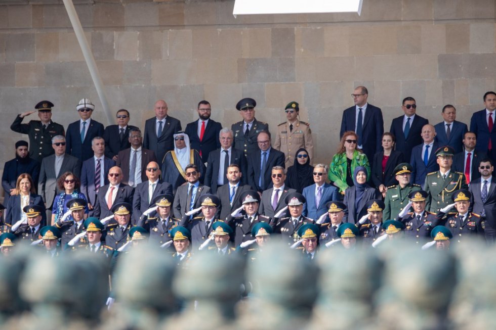 Eyni zamanda paradın tribunasında 75 ölkədən nümayəndə heyəti var idi ki, onlardan 37-si - Rusiya, Ukrayna, Çexiya, Macarıstan, Moldova, Çin, İsrail və İran da daxil olmaqla - səfir səviyyəsində təmsil olunmuşdu.