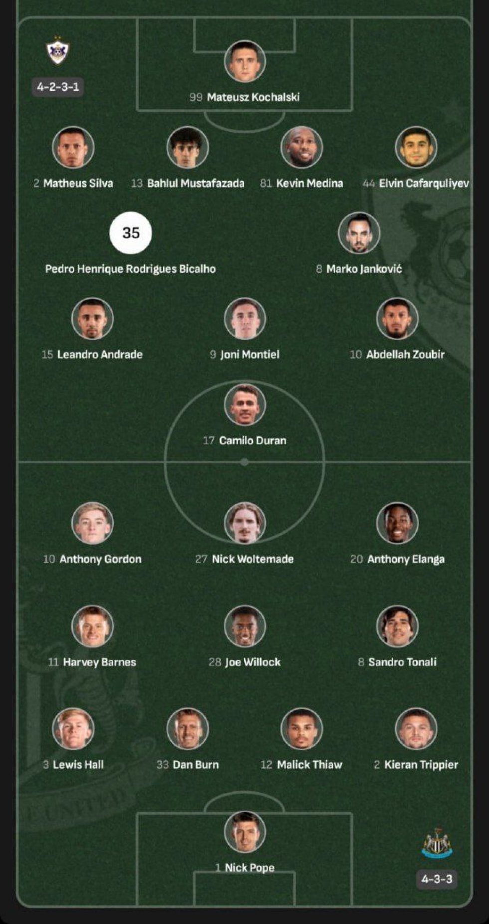 "Qarabağ" və "Nyukasl" komandalarının start heyətləri açıqlanıb