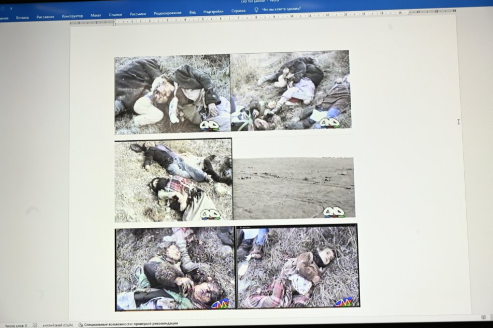 Növbəti kadrlarda Birinci Qarabağ müharibəsində müxtəlif sayda hərbi geyimli azərbaycanlının qətlə yetirilərək öldürüldüyü, torpaq üzərində cansız cəsədlərinin qaldığı görünür.