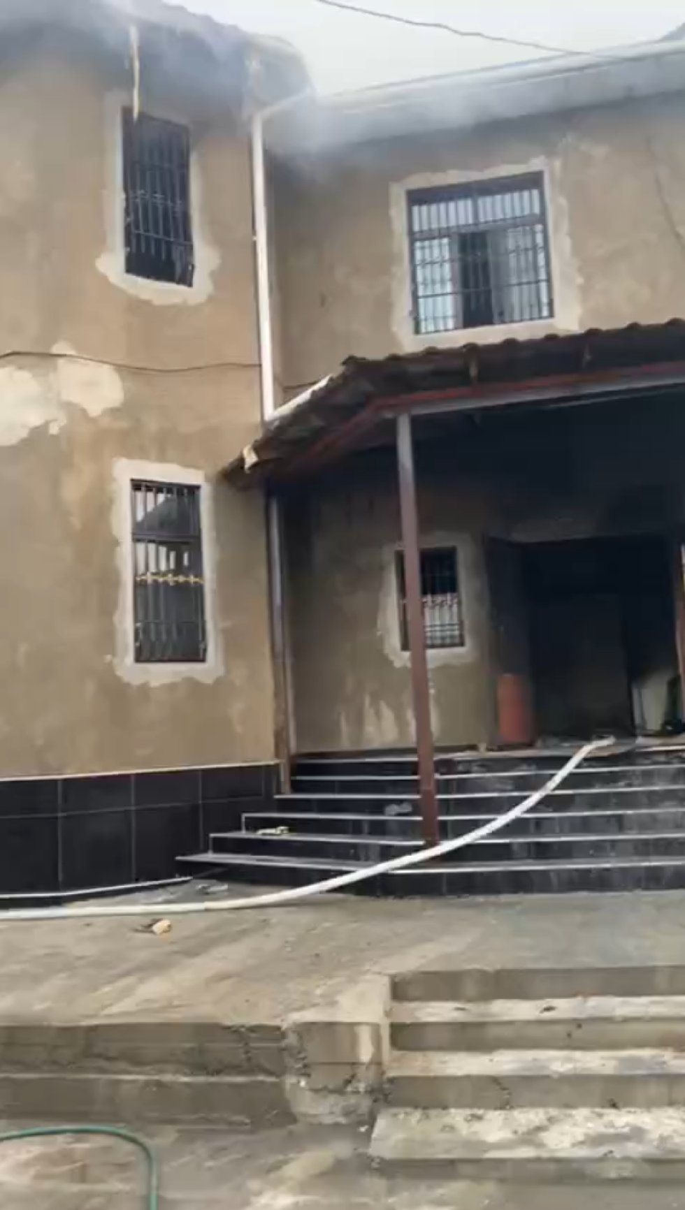 Qonşuların sözlərinə görə, evdə qonaqlar olub. Şəxsi evdə baş verən yanğın 360 kvadratmetr ərazini əhatə edib. Səhər tezdən yanğın binanı bürüyüb.