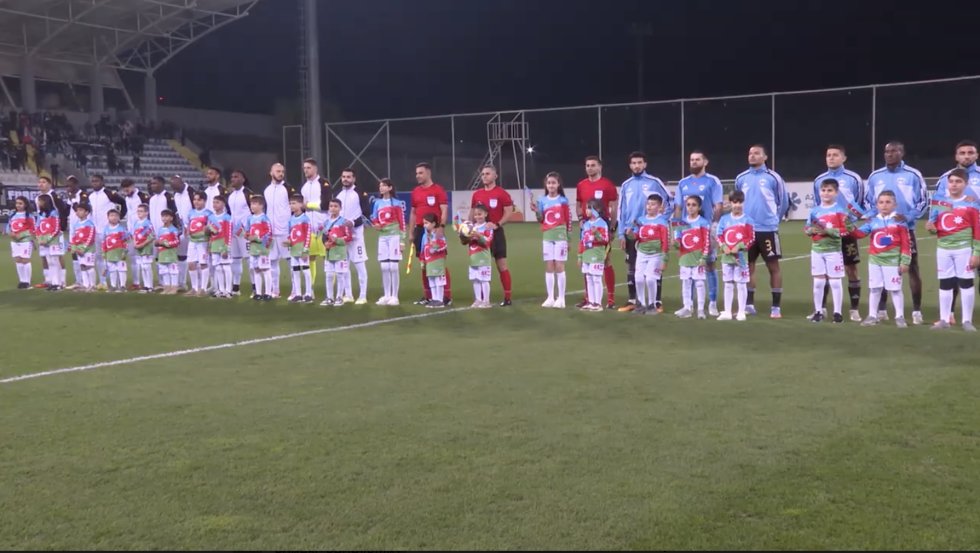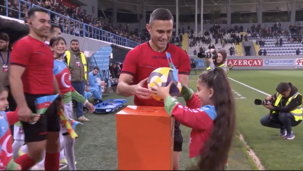Futbolçular meydana şəhid övladları ilə birlikdə Azərbaycan bayrağının rənglərini geyinmiş və Qələbə Günü və Dövlət Bayrağı Gününün simvolları olan 44 və 8 rəqəmlərini taxmış şəkildə çıxdılar.