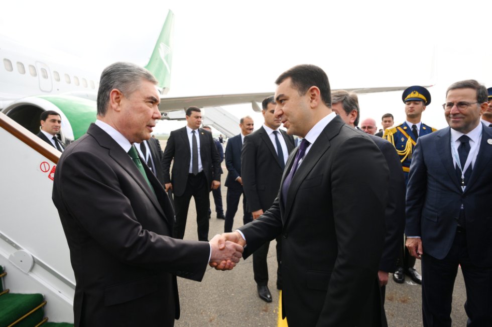 Türkmənistan Xalq Məsləhətinin sədri Qurbanqulu Berdiməhəmmədovu hava limanında Azərbaycanın mədəniyyət naziri Adil Kərimli və digər rəsmi şəxslər qarşılayıblar.