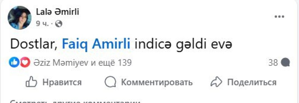 Hadisə barədə onun həyat yoldaşı Lalə Əmirli sosial media səhifəsində məlumat verib.
