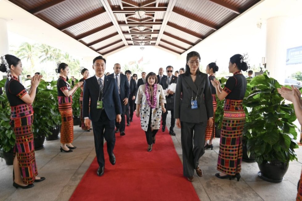 Qionghai Boao beynəlxalq hava limanında Milli Məclisin sədrini Hainan Əyalətinin vitse-qubernatoru Yanq Quigianq, Azərbaycanın Çindəki səfiri Bünyad Hüseynov və digər rəsmi şəxslər qarşılayıblar.
