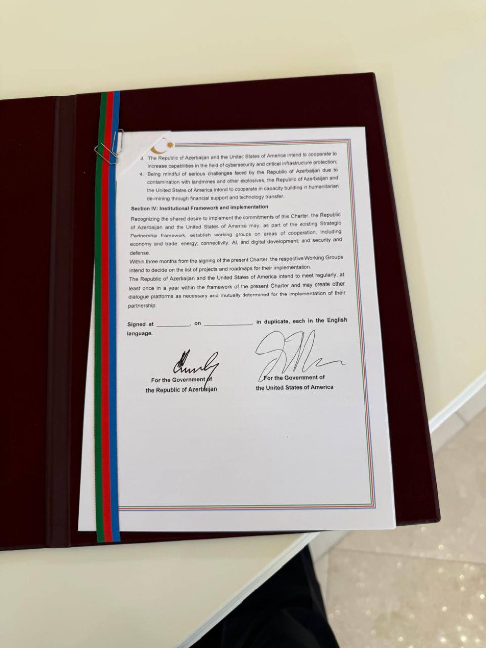 Azərbaycan Prezidenti İlham Əliyev və ABŞ-ın vitse-prezidenti Vens Strateji Tərəfdaşlıq Xartiyasını imzaladılar.
