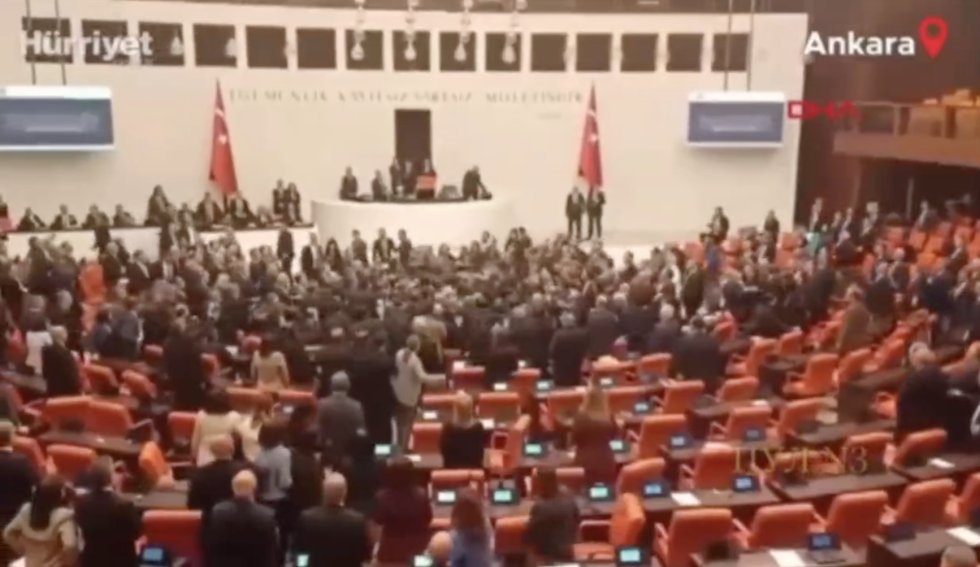 AK Partiya Qrupunun sədri Abdullah Gülər kürsüdə çıxış edərkən, CHP Qrupunun sədr müavini Murat Emir AK Partiya üzvü Mustafa Varanka yaxınlaşıb. AK Partiya və CHP millət vəkilləri arasında gərginlik yaranıb. CHP Sivas millət vəkili Ulaş Karasu AK Partiya Adıyaman millət vəkili İshak Şenə yumruq vurub. Şen yerə yıxıldıqdan sonra dava daha da qızışıb.
