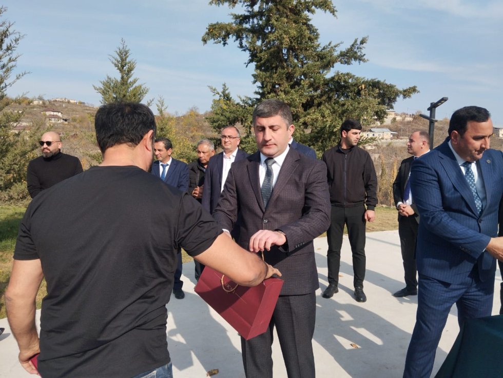 Kəndə köçürülən ailələrə mənzillərin açarları təqdim olunub.