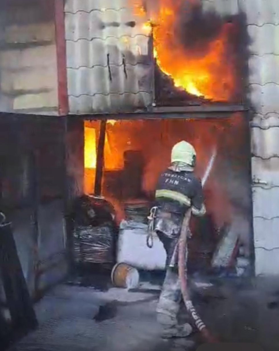 Bakının Nərimanov rayonu, Ziya Bunyadov prospektində iki tikinti materialları mağazası və anbarı yanıb.